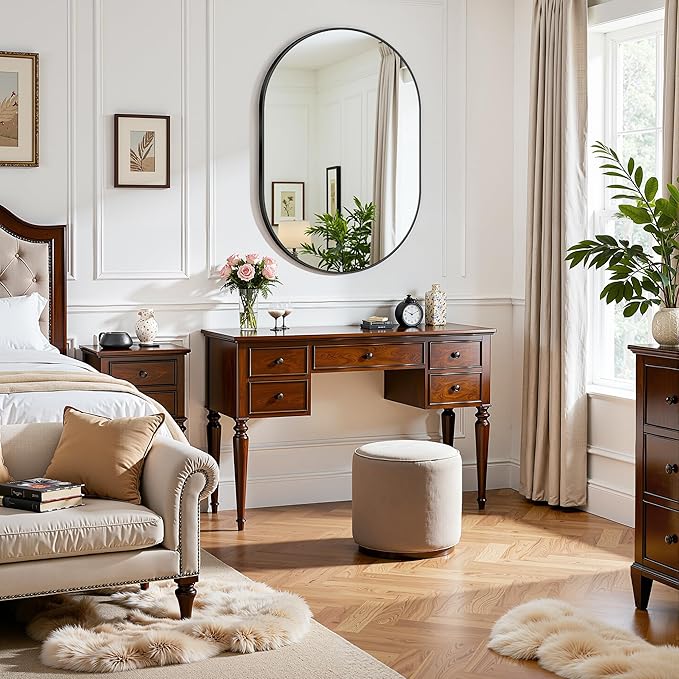 Antok Wall Mirror, 24"x36" Bathroom Vanity Mirror, Anti-Rust HD Tempered Glass, Wall Mounted Mirrors for Living Room, Entryway, Black Frame, Oval