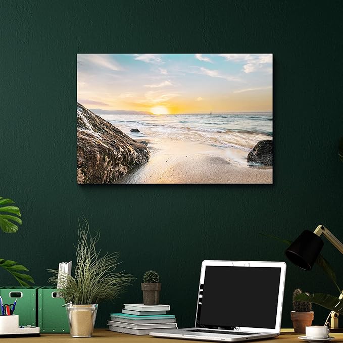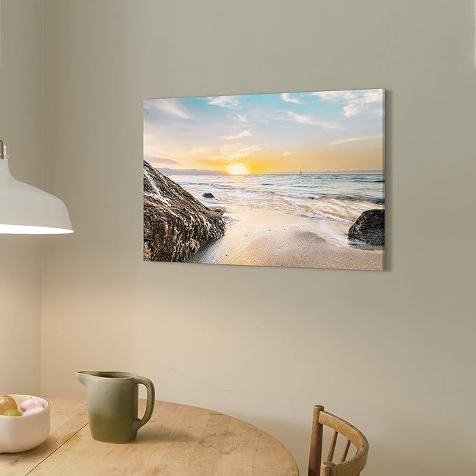 - Size: The beach canvas art is 24 x 16 inches. The coastal wall art lends a relaxing coastal vibe to any room. Hanging this sunset wall art beach will add vibrancy to living room, bedroom, bathroom, kitchen, dining room, hallway, or office
