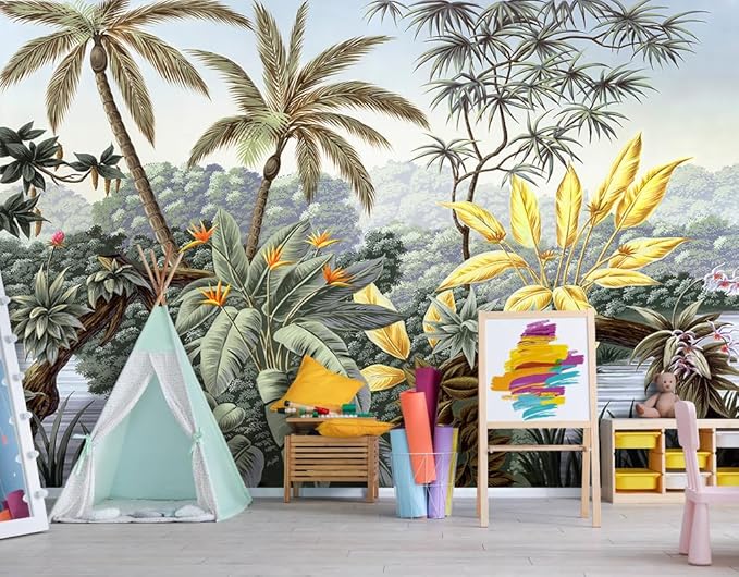 -Tropical Botanical Palm Leaf Fabric Wallpaper Living Room Bedroom Bathroom Rainforest Plant Jungle Large Wall Mural- 137"x96"ļ¼ not Peel and Stickļ¼