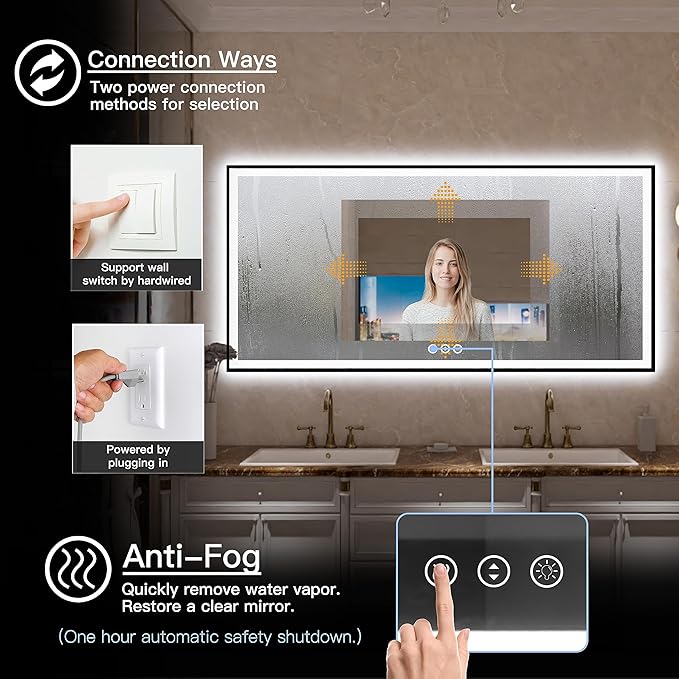 - 【Note】The four corners of tempered glass require specific protection! If you want to change the way the mirror is switched on and off, please contact a professional to perform the operation