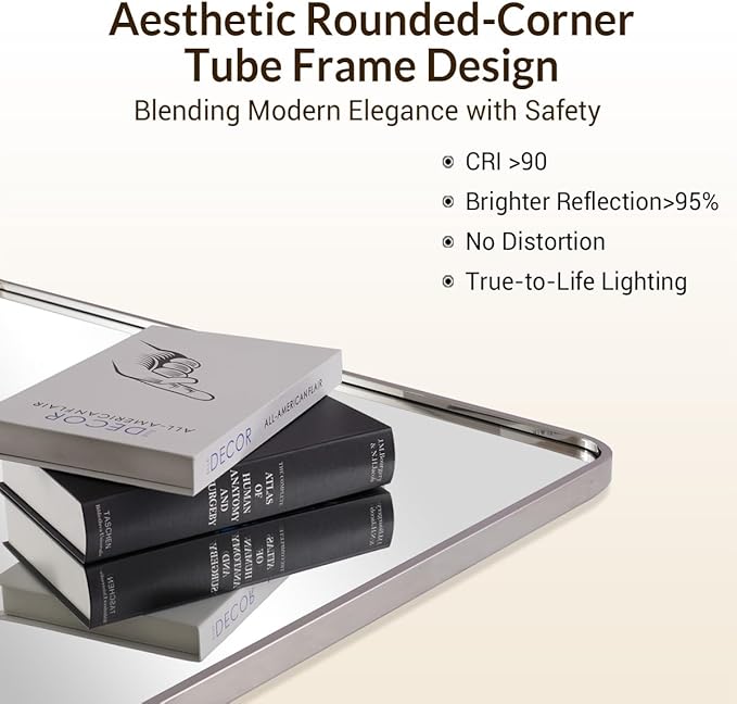 - Beautiful and Upgraded Design: Its unique rounded tube frame design in a fascinating polished nickel color is sure to attract your attention. The 3/8-inch frame width and 1-inch depth create a 3D look that promises to suit any home decor and style. Perfect for modern homes, this sleek bathroom mirror is a must-have item