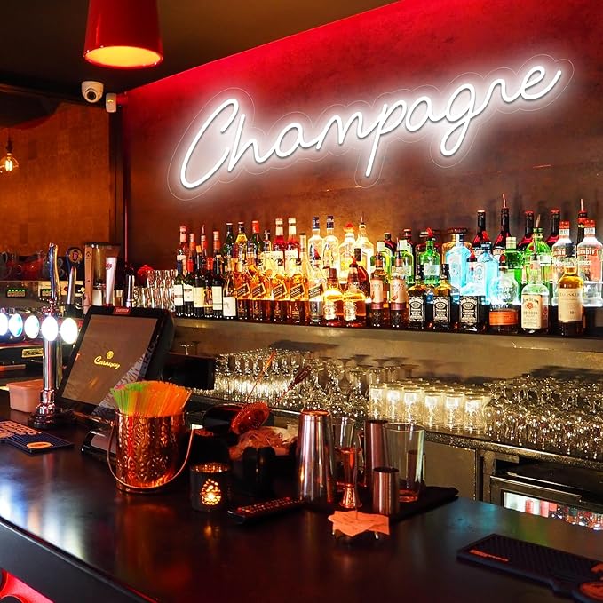 - 🎁Unique Champagne Neon Design - Convey an attitude to life and create an upbeat party atmosphere with this Champagne bar neon sign! Champagne neon signs for backdrop decoration your living room, bedroom, or your bar/bistro.Champagne LED signs can decorate your personal style and create a unique atmosphere. Bar/Club Champagne neon lights signs can liven up any dull space and is an essential party decoration.