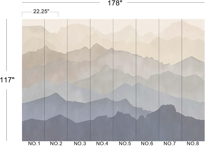 - The size of the wallpaper is 178" wide x 117" high and divided into 8 panels.