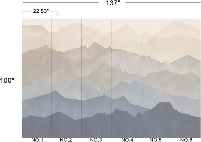 - The size of the wallpaper is 137" wide x 100" high and divided into 6 panels.