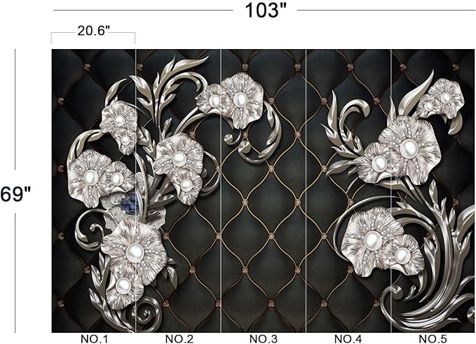 - The size of the wallpaper is 103" wide x 69" high and divided into 5 panels.