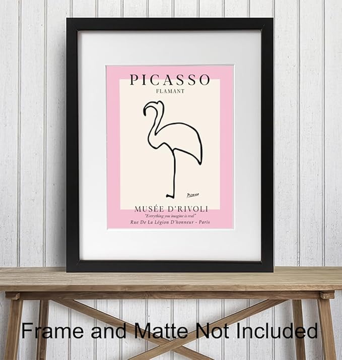 Mid-Century Modern Art 11x14 - Minimalist Line Art Wall Decor for Modern Home - Abstract Gallery Wall Artwork - Tropical Beach House Museum Poster - Contemporary Aesthetic Room Decor - Pink Flamingo