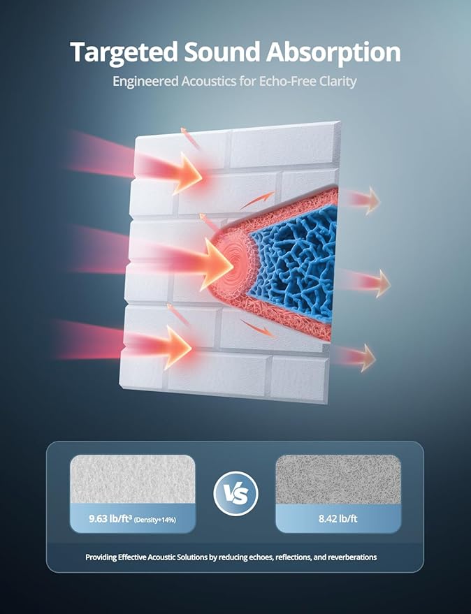 - Experience Better Audio: Acoustic panels reduce echo and reflections by absorbing stray sound waves in the room. Whether relaxing, recording, or gaming, our panels improve clarity and reduce noise, providing mild soundproofing for a calmer home.