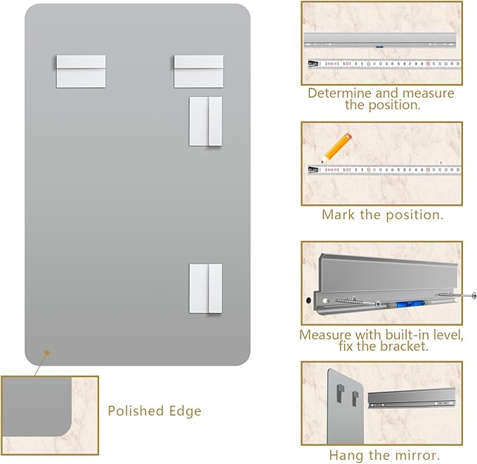- [100% Satisfaction] We have been committed to providing consumers with high-quality bathroom vanity mirrors, if the mirror arrives damaged, please feel free to contact us, we will provide you with a refund or replacement, hope you will be 100% satisfied.
