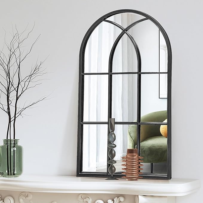 - 【ARCHED BATHROOM MIRROR】The arched window mirror size is 24"x42" inch.with iron Frame,modern design style,This decorative wall mirror makes a great way to add vertical space and draws your attention