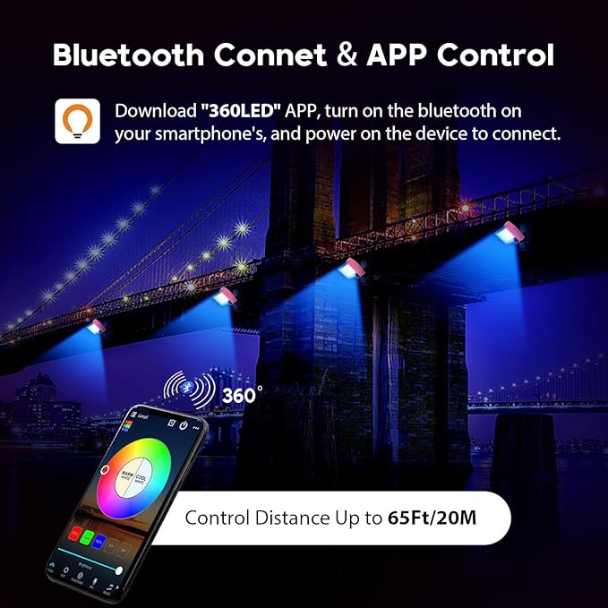 - Smart APP Control: Connect the wall washer lights to the "360LED" app via Bluetooth for easy to control multiple lights individually or in groups. No WiFi connection required. The maximum control distance is up to 65 feet for control the lights from anywhere. The led flood light works from 100Vac to 277Vac, which enables you to use both at home and commercial lighting purposes