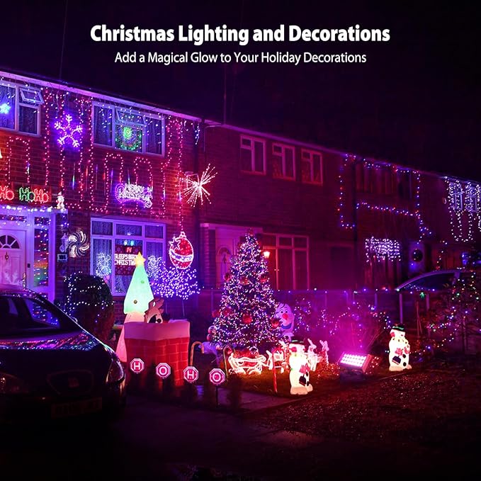 - Programmable Wall Washers: Equipped with 24x7w ultra-bright LED beads, 168w super bright, 16 million colors (including 2700K-6500K, warm white to cool white CCT adjustable. 20 preset modes with brightness and speed adjustable. Easily control your smart light through the phone app, adjust colors and brightness, bringing vibrant lighting to any space with a single touch