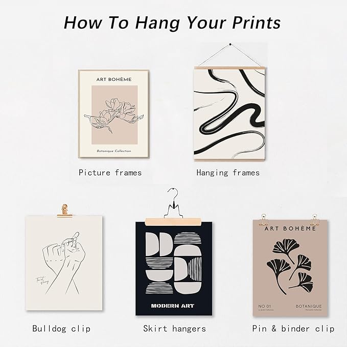 - 【Pefect Eclectic Home Decoration Ideas】 With excellent aesthetic black and beige color matching, this abstract boho posters are easy to mix and match different home styles to create an elegant vibe into any space, like living room, bedroom, kitchen, bathroom, dining room, office hotel, restaurant bar, or any other occasion. The maximalist boho room decor is the perfect gift for eclectic style//Boho style wall art lovers.