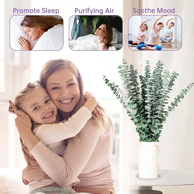 - Home Spa: The eucalyptus bundle is perfect for hanging in your shower as bath essentials. The original scent of natural eucalyptus will bring you peace and tranquility. The steam and heat of the shower are even more helpful to release eucalyptus essential oil, promoting relaxation. Breathe easier in your home spa