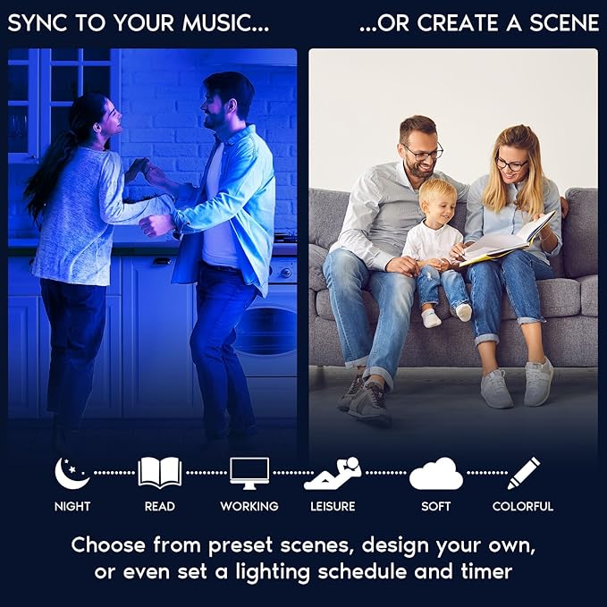 - APP CONTROL - With 2.4GHz WiFi connectivity, everything is at your fingertips. Effortlessly control your lights from anywhere using the SmartLife phone app through android or iphone. Set personalized scenes that match your mood or activities and create timers and schedules to automate your lighting, ensuring convenience and energy efficiency. Make groups to control your lights all together or separately depending on room or preference. No hub is required, simplifying the setup process.