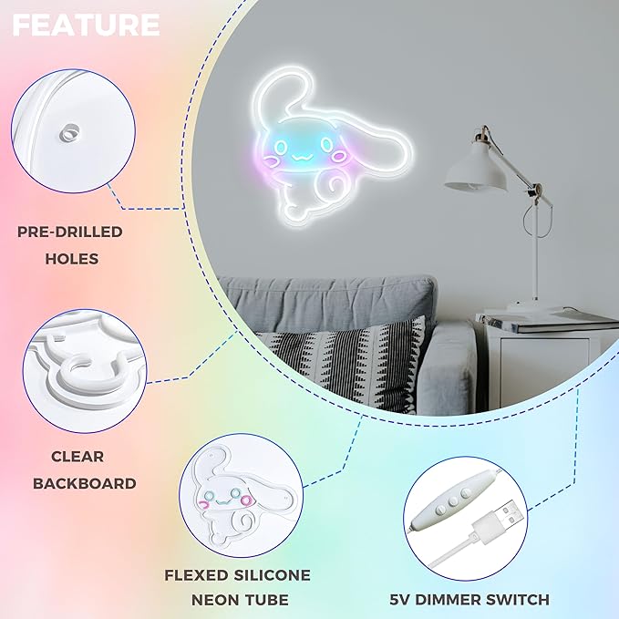 - EYE-CATCHING DECOR: This neon sign adds a pop of color & style to any room. Perfect for fans of Cinnamoroll and anime neon signs.