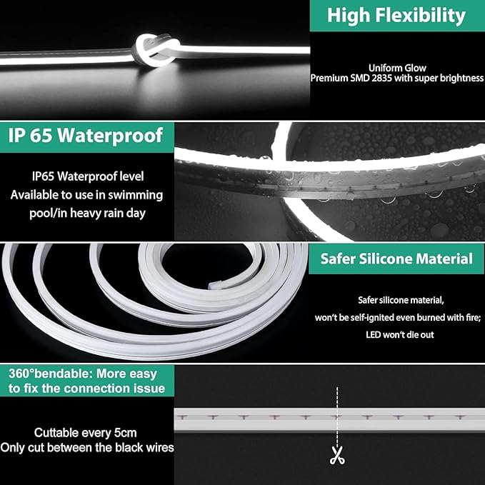 - Cuttable & Extendable: Cuttable every 1.96 inches along a black marker line to create custom shapes and patterns for decoration or lighting effects.