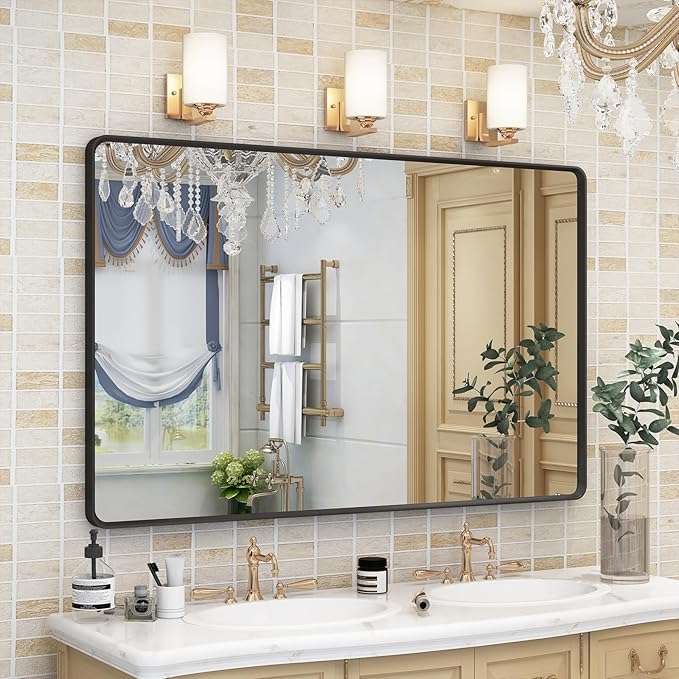 - Clear Reflection & Distortion Free: Crafted with high quality float-glass, our black bathroom mirrors present an ultra-clear image with no-distortion. The black mirror is ideal for decorating or remodeling bathroom, vanity, farmhouse, bedroom, living room, entryway, fireplace.