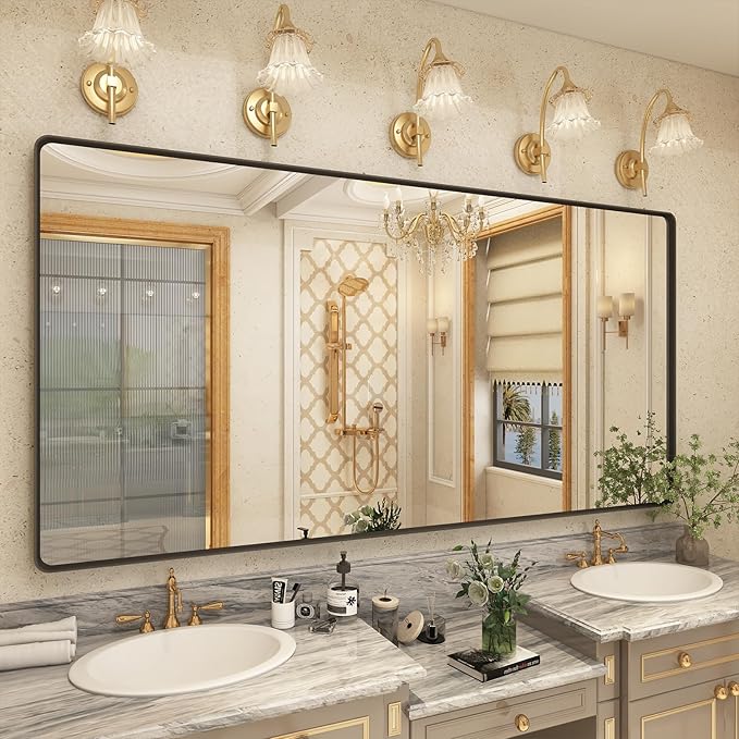 - Clear Reflection & Distortion Free: Crafted with high quality float-glass, our black bathroom mirrors present an ultra-clear image with no-distortion. The black mirror is ideal for decorating or remodeling bathroom, vanity, farmhouse, bedroom, living room, entryway, fireplace.