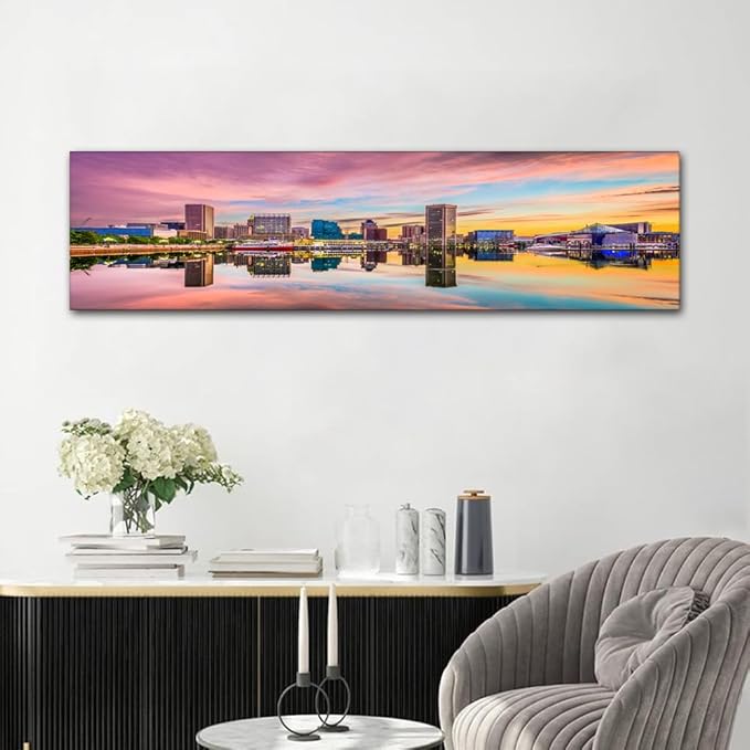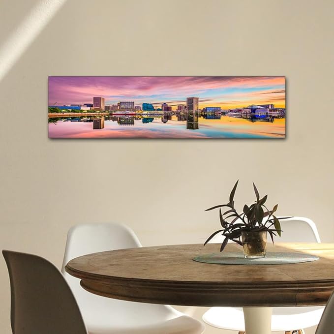 Canvas Wall Art for Living Room Baltimore Maryland Modern Home Decor USA Skyline on the Inner Harbor HD Printed Posters for Bedroom Office Wall Art Painting Bathroom Pictures Ready to Hang 12x46 Inch