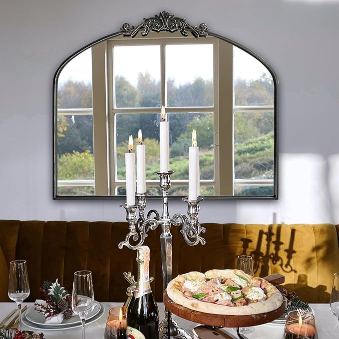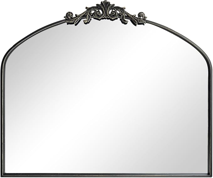 Black Arched Mirror for Wall,Baroque Fireplace Mirror Decor,Brass Wall Mirror,Ornate Mirrors for Entryway/Bathroom/Living Room/Hallway 36"X30" …
