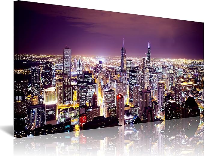 - Chicago cityscape: 20x40inchx1pcs. Experience the grandeur of Chicago's skyline through this captivating cityscape canvas. Its modern design brings the city's energy to your bedroom, office, or dining room.