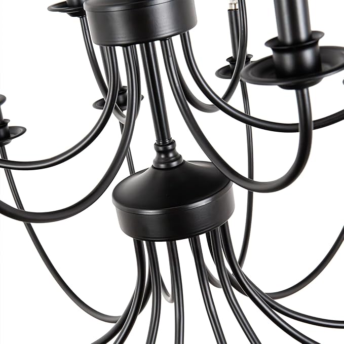 - Comfortable Glow: This large double-deck black chandelier features high-quality curved arms with a classic black finish for allure. The 18-light design provides 360°light coverage, fully lighting up your house with a cosy atmosphere and comfortable feeling. With the retro and solid designs, the light fixture is ideal for both modern and traditional interiors. It provides bright and warm light, which can elevate your decor, and fits industrial, antique, and retro interior designs