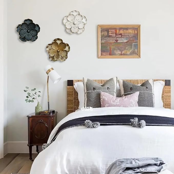 - READY TO HANG: Each metel flower wall sculpture art is attached with a metal hook on the back for hanging. Easy and ready to hang on wall. When receiving the artworks, it may be slightly deformed due to transportation, kindly adjust by hand to the best condition. And please permit little color difference existing due to hand-painted craft.