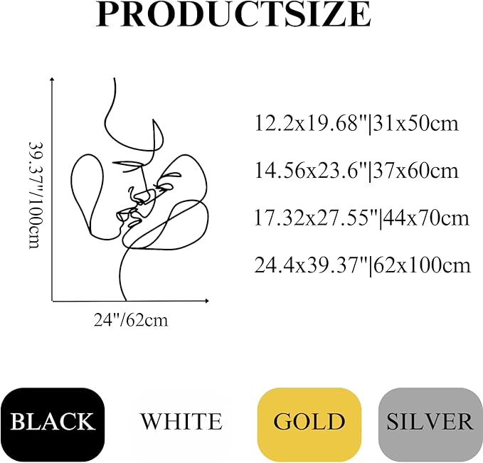 - Metal Wall Art:Abstract one line art with soft and organic curves, creates a minimalist and modern atmosphere for any space. 3D craftsmanship satisfies the most versatile metal large wall art set design, and simple decoration brings infinite artistic beauty.