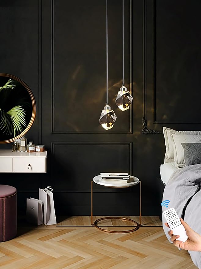 Chrome Crystal Pendant Lights Kitchen Island, Bedroom Bedside Hanging Crystal Ceiling Light, Dimmable 3000k-6000k 1-Light Independent