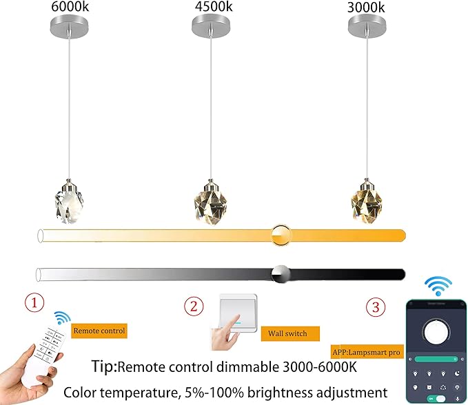 - ✨【BULB DETAILS】: Including built-in LED 5W,and remote control dimmable 3000-6000K color temperature, 5%-100% brightness adjustment,the chandeliers have their own dimmers, which can adjust different light colors according to mood