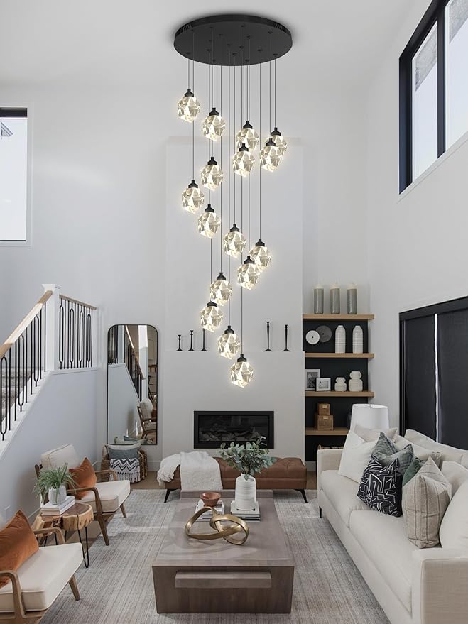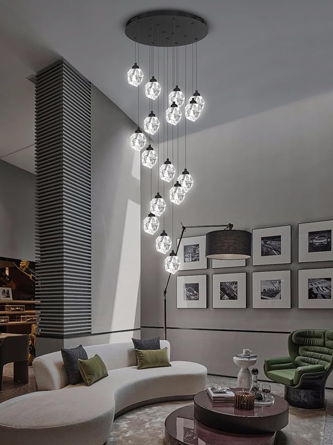 - ✨【High Ceiling Chandelier Modern Led Chandelier Design】The modern and minimalist led crystal teardrop chandelier design is being timeless. Polished chrome stainless steel ceiling canopy, 16 elegant clear ice crystal spiraling downward,stainless steel design makes this crystal chandelier richer in refraction surface, K9 crystal ball polyhedron cut, as dazzling as diamond, you will love the glow of this lamp.
