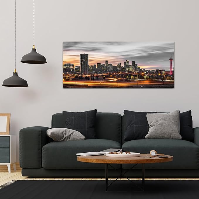 Nachic Wall Denver Skyline Picture Wall Art Decor USA Downtown City Poster Painting Colorado Photo Canvas Prints for Home Office Decoration 20"X48"