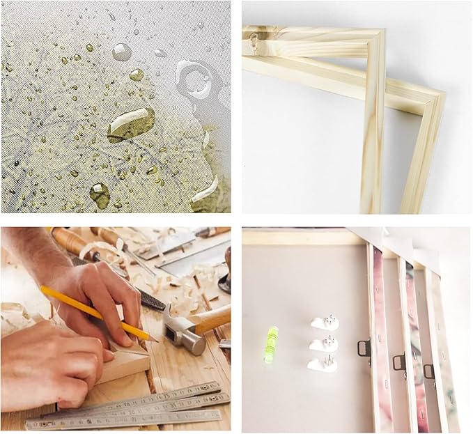 - Each panel canvas has a hook already mounted on the wooden bar trouble-free to hang out of box