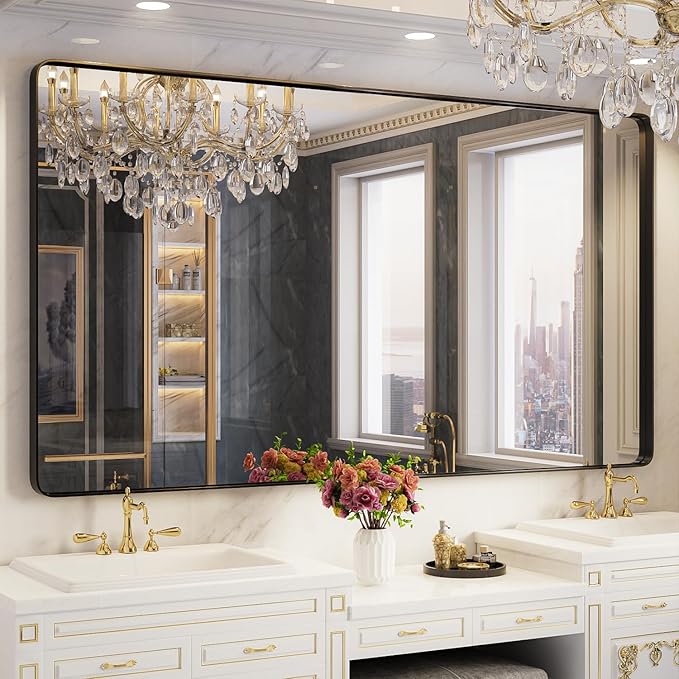 Large Bathroom Mirror for Wall, 72x40 Inch Matte Black Framed Bathroom Vanity Mirror for Farmhouse Living Room Bedroom, Anti-Rust, Tempered Glass, Rounded Corner, Horizontal/Vertical