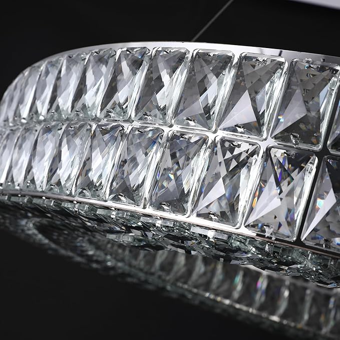- ✨【Elegant Crystal Chandelier for Dining Room】High quality & contemporary design: This crystal chandelier hanging combine with three - sided clear crystal and stainless steel.Stainless steel design makes this crystal chandelier richer in refraction surface, K9 crystal faceted cut, as dazzling as diamond, that is modern and luxurious, ideal for furniture decoration lamps.