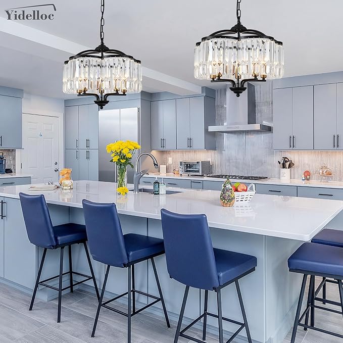 - 【Adjustable Heights】Adjustable metal chain, free to get the lighting effect you want. Perfect for kitchen island, hallway, dining room table, bedroo, allowing you to adjust the hanging length to meet your needs according to your preference and design. This means this crystal pendant light can be adapted to different ceiling heights as needed.