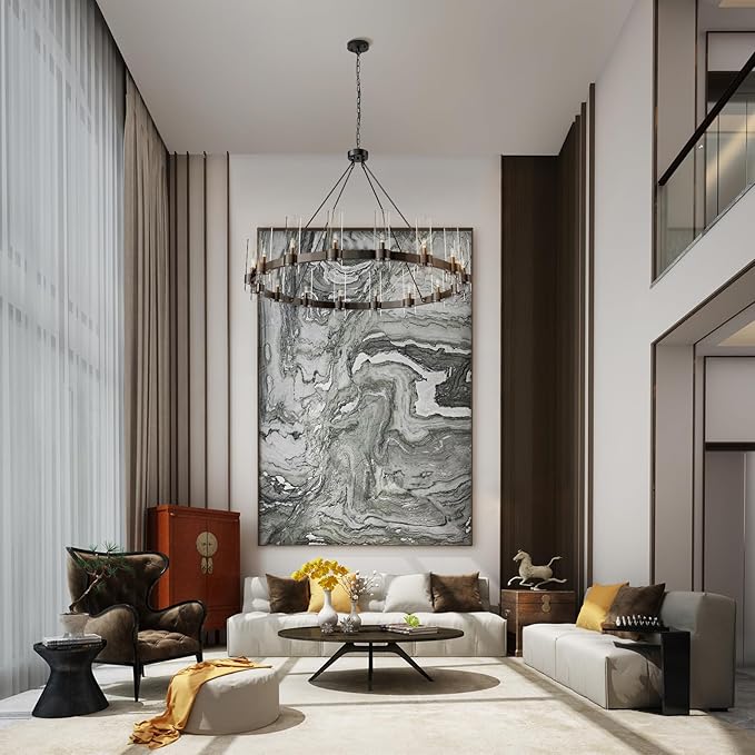 - 【Easy to Install】Improved, this Wagon Wheel chandelier is easier to install, which is a DIY-friendly choice. The instruction manual explains in detail how to install it. This modern farmhouse chandelier can also be installed on flat, sloped or vaulted ceilings.