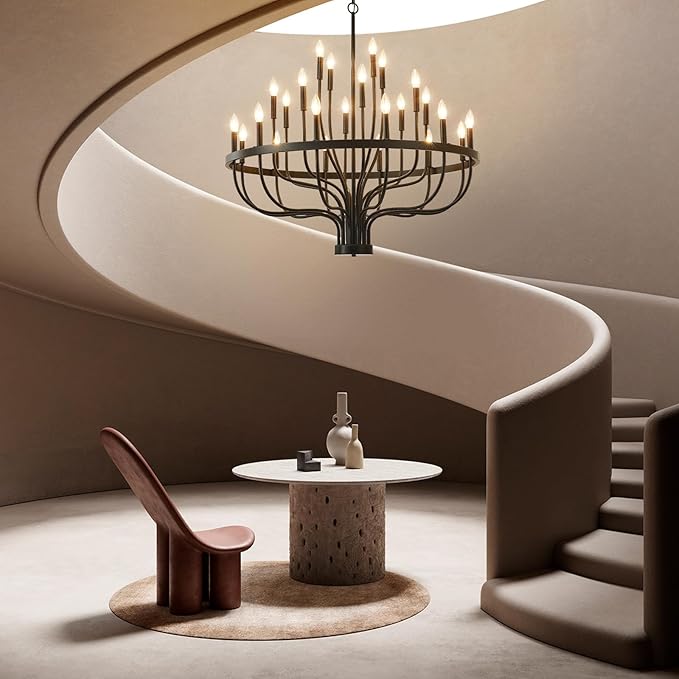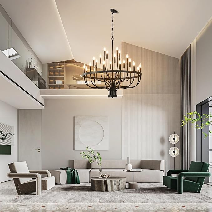 24-Light Black Chandelier, 40" Large Farmhouse Chandeliers for High Ceilings, Vintage Rustic Candle Chandelier for Dining Room Foyer, Modern Industrial Pendant Light for Living Room Entryway