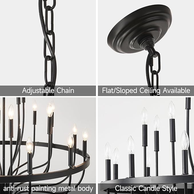 - Easy Installation -- The large dining room chandelier package includes all mounting hardware and manuals. It can be installed on flat, sloped, or vaulted ceilings. All the bulb sockets and electric wires are UL-listed, safe, and reliable