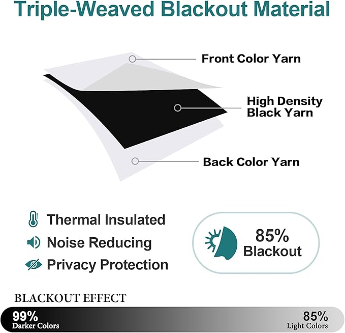 - EASY CARE: These grommet blackout curtain divider for room separation feel soft with no chemical smell, Same solid color on both sides. Machine washable below 86℉; Gentle cycle; Do not bleach; Tumble dry low; Warm iron.