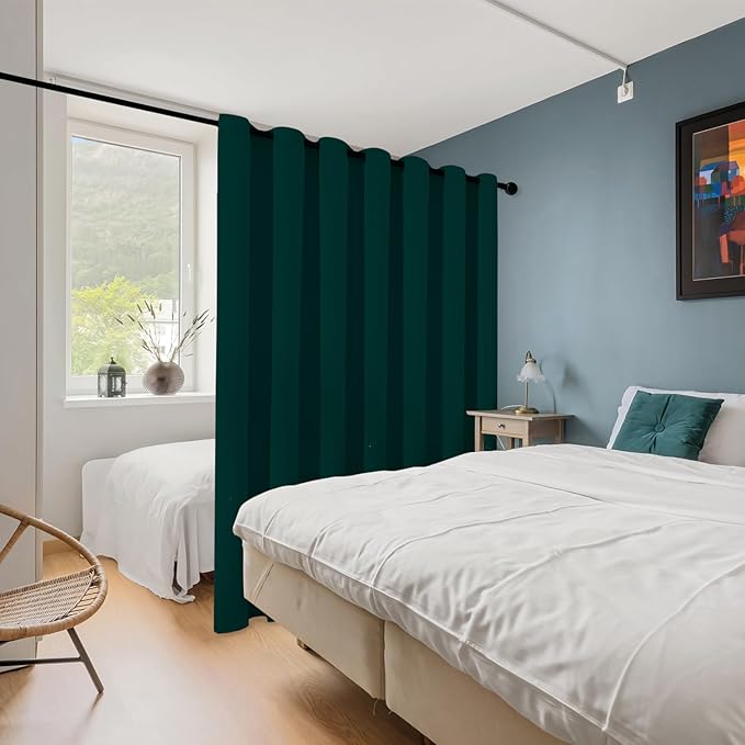 ChrisDowa Room Divider Curtain 96 Inches Long, Wide Blackout Sliding Door Curtain for Bedroom, Room Darkening Privacy Window Curtain for Patio Door (1 Panel Set, Forest Green, 100 x 96 Inch)