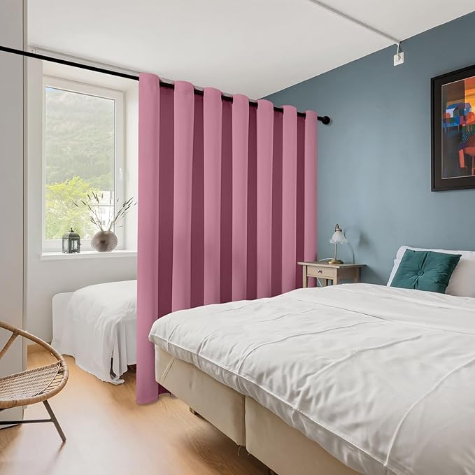 ChrisDowa Room Divider Curtain 108 Inches Long, Wide Blackout Sliding Door Curtain for Bedroom, Room Darkening Privacy Window Curtain for Patio Door (1 Panel Set, Pink, 100 x 108 Inch)