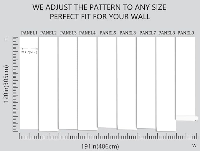 - Our mural is 120 inches tall and 191 inches wide, and to make it easier to transport over long distances, we have divided the width into 9 panels of 21.2 inches each, with a numerical serial number under each section to make installation easier!
