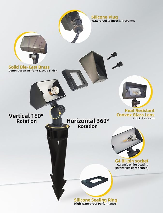 - UNIQUE DESIGN: Enhance your outdoor aesthetics with this beautifully crafted landscape light made of die-cast brass. The fixture is rated IP65 weatherproof, durable, and complements the architecture of the surrounding area. With a superior corrosion resistance and pressure resistance, this outdoor flood light have longer service life and longer lasting than aluminum and plastic lamps.