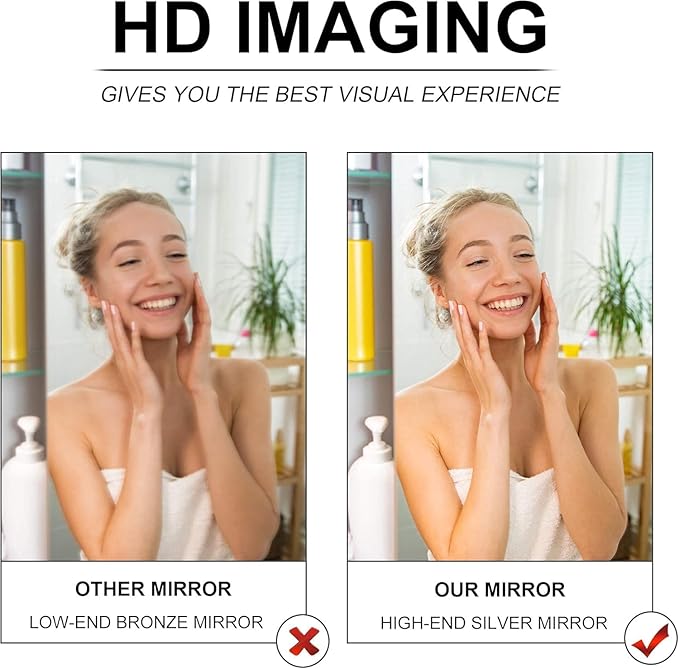 - HD IMAGING All mirror use high-end 4mm thick silver glass mirror, which provides a clear distortion-free reflection, and eliminate the common reflective distortion of low-end mirrors. The mirror's clear image gives you the best visual experience