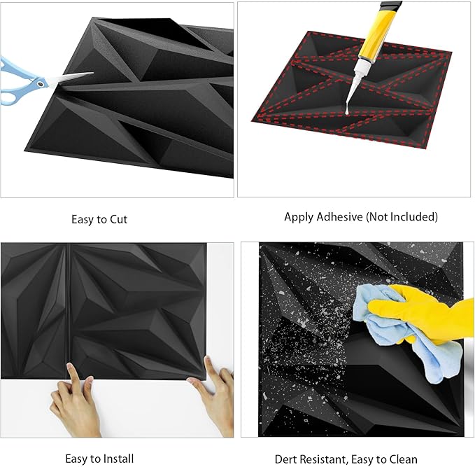 - Premium Material: The black 3d wall panels are made of high quality PVC, which make them more durable, features lightweight and cutable, waterproof, fire-resistant, easy to clean, allowing for convenient maintenance.