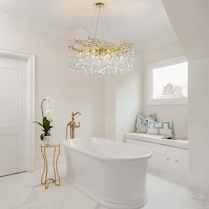 - Crystal Chandelier Light Source: This round crystal tree branch chandelier does not include light bulbs. It requires 14 G9 bulbs, which you can select based on your preferred color temperature to complement your home décor. For a warm and inviting atmosphere, we recommend using 3000K warm white bulbs. The chandelier is also dimmable when paired with dimmable bulbs and a compatible dimmer switch.