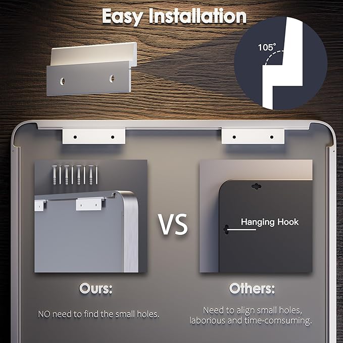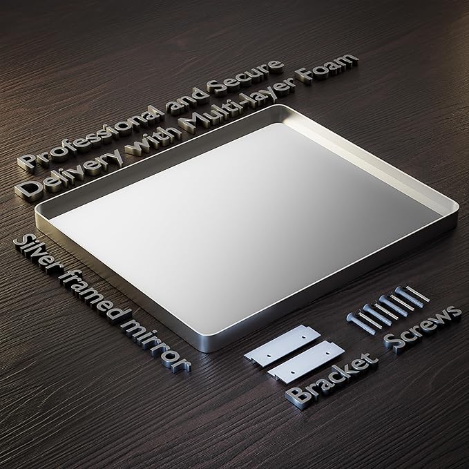 - ✔【Safe & Easy Installation】 Unlike ordinary bathroom vanity mirror, our brushed silver framed mirror is equipped with two Z-shaped brackets, making installation easier and sturdier to calibrate the installation position accurately. And it can fully support the weight of the mirror.