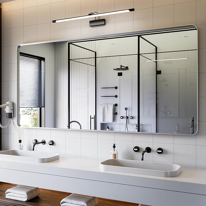 - ✔【HD Tempered Glass】 Yamazakura large bathroom mirror adopt 5mm tempered glass, no harm as it will not splash into pieces if broken. The 5-layer floating technology can make the fog volatilize faster and clearly reflected with no distortion, pefectly as vanity mirror for bathroom.