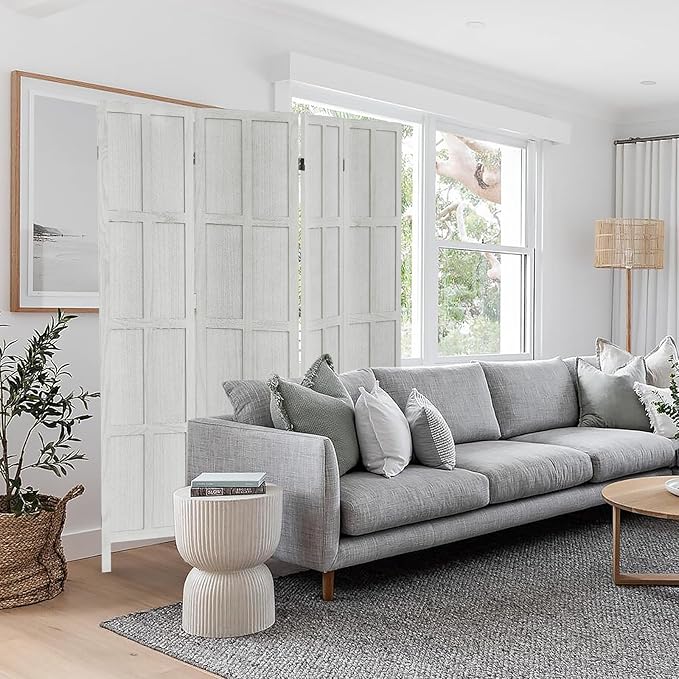 4 Panel Room Divider, 5.6Ft Wood Room Dividers and Folding Privacy Screens, Room Divider Wall Freestanding Room Partitions, Room Dividers Screen for Home Office Restaurant Bedroom, White